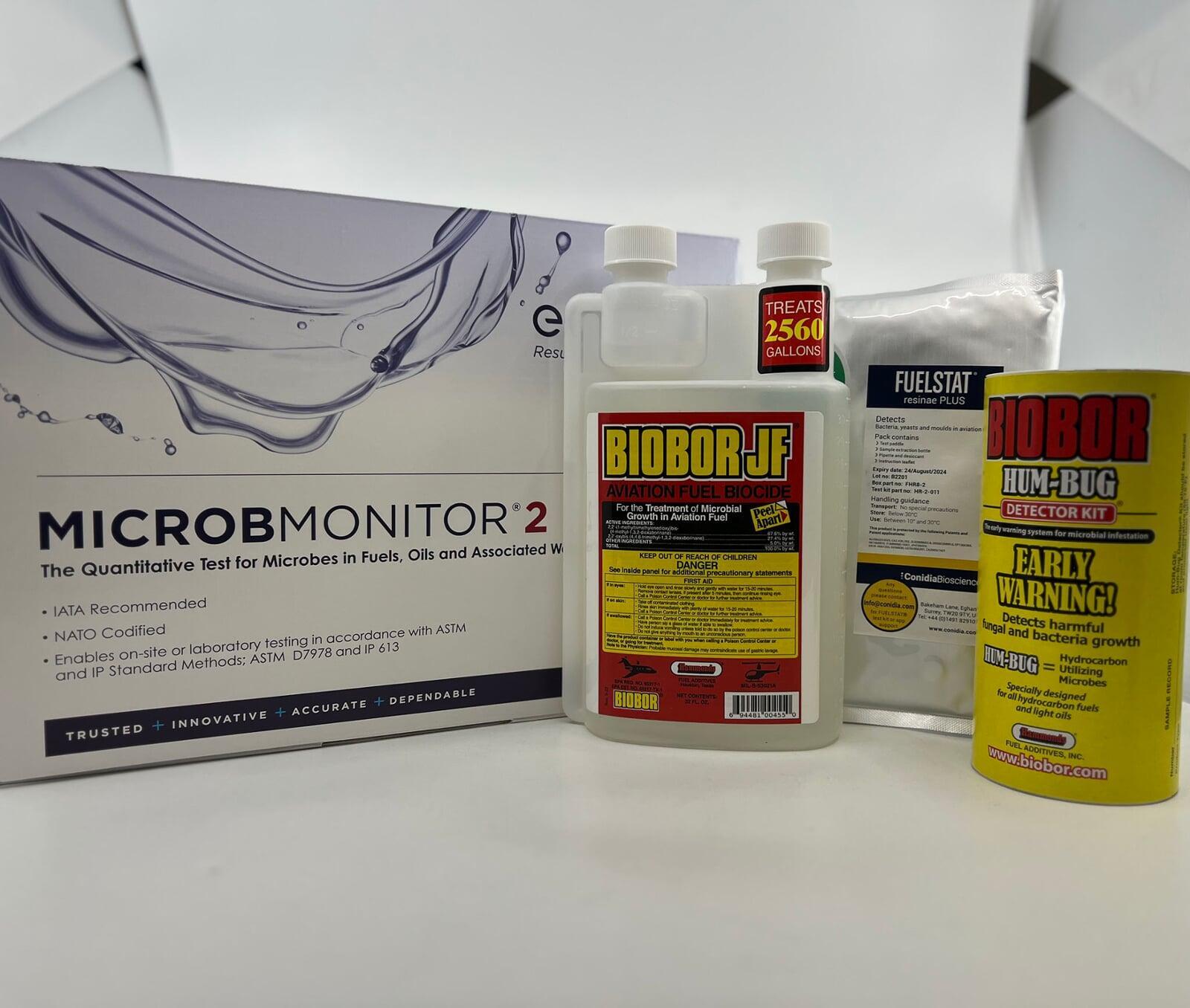 Bacterial growth typically appears as a 'black sludge' found in the lowest points of the fuel tank or trapped areas of the tank collecting water. This biomass is typically found when the aircraft is not being used often and moisture is allowed to develop in the fuel tank. Bacterial growth sometimes can be found above the fuel but generally lives in the area where moisture deposits in the tank. Bacterial growth does not actually live in the fuel, it lives in the water trapped in the fuel tank. This is one good reason to sump your fuel tank to remove the water so the bacterial growth has no place to grow. You may be asking yourself, how is bacterial growth a problem? First of all, the biomass will clog your filters and affect your sensitive engine equipment. Secondly, the byproduct of the bacterial growth is very corrosive and damaging the aluminum skins and sealant of your fuel tanks. Typically if bacterial growth is found early enough, major damage can be avoided. Microbiological growth can leave behind spores requiring the entire fuel system to be treated at one time meaning the fuel must be discarded and the fuel tank must be properly decontaminated.